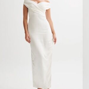 Introducing the epitome of modern glamour: the HARLEY Off-Shoulder Satin Maxi Dress. With its off-the-shoulder design, this dress exudes sophistication and allure, ensuring all eyes are on you. The centre back zip allows for easy wear, while the gathered overlay detail adds a touch of romance and dimension. Embrace the drama with the maxi length and leg split, perfect for making a statement on any occasion. Lined for comfort and a flawless fit, the Harley dress is your go-to choice for unforgettable moments and breathtaking style.