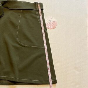 New with tags full circle trends size XL army green mini skirt with belt. Never worn, so stains or rips. Two full pockets on sides of skirt. Made with 95% polyester and 5% spandex. Approximate measurements: waist 32 in.; length 17 in.
