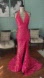 NWT! Standout sparkly showstopper hot pink fuchsia iridescent Jovani prom dress. Geometric sequins with halter v neck and leg slit. Sz 4