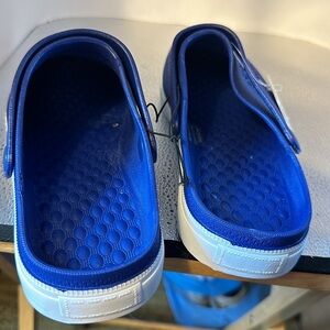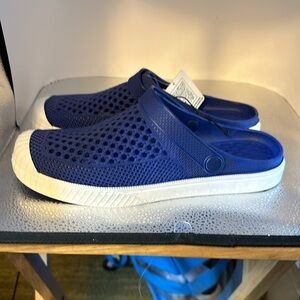 New with tags layer eight clogs/sandals. Beautiful, navy blue and white size 10.