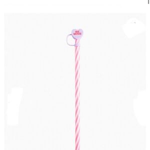 New with tags. Valentine’s Day candy hearts theme pink striped plastic straw with “BE MINE” topper. SO CUTE. Compatible with most 30 ox and 40 oz tumblers. From the Paper Store. 12 inches