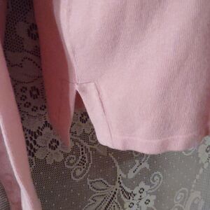 New with tags Apostrophe size small 6-8 long sleeve soft pink cardigan sweater super soft machine washable, 17 in pit to pit 22 in Long, excellent condition