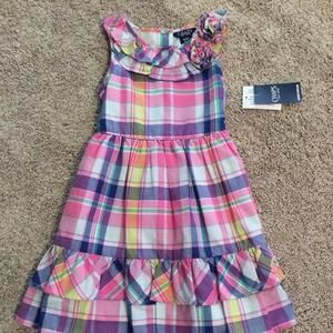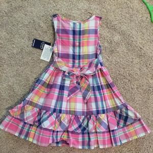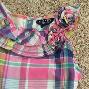 Beautiful new dress with tags attached size 4 Chaps by Ralph Lauren. Gorgeous ruffle and flower details at top of the dress and ruffles at the bottom. The back has partial button up closure with a bow you can tie such a beautiful dress!