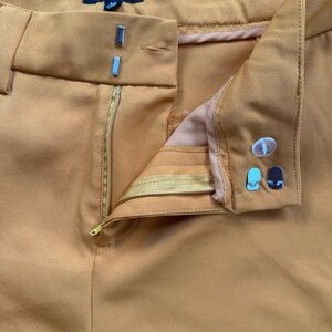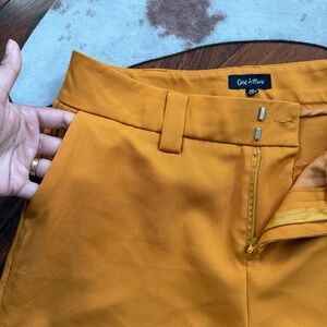 orange cuffed shorts - new but tag was removed to wash and disinfect. never worn and in excellent condition. button and zip fly closure - both in tact. true to size fit.