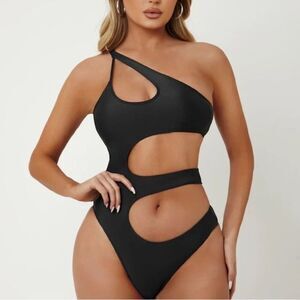 New without tag Shein Black Cut-out One Shoulder One Piece Swimsuit Size S