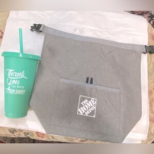 New lunch bag from Home Depot and cup that says “Thank you for being awesome “. There’s no spots on the lunch bag but shadows. New never used.