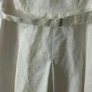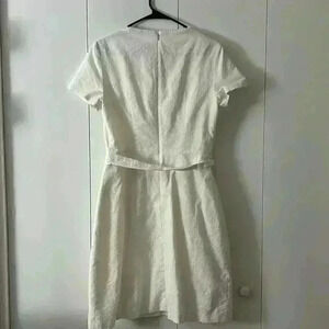 This is a stunning texturized, white midi dress with a hook and eye belt in the middle short sleeve, zipper back, stunning and lined. Size 12 UK