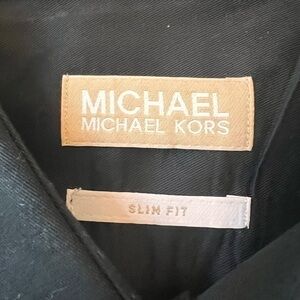 New without tags slim fit Michael Kors button down men’s shirt. Cotton poly blend. Black. Size 17-171/2 34/35.