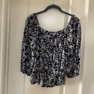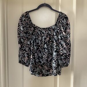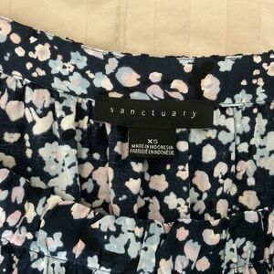 Sanctuary flowy blouse. Square neckline and slight puff at 3/4 inch sleeve. XS but I am a small in most other brands except Sanctuary so this brand runs a bit big