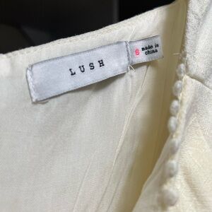 Never worn, my son’s graduation rained. Beautiful, boutique from Threads Marketplace, bottom ruffle, front cut out, 31 inches shoulder to bottom hem, 12 across waist. Cream.