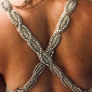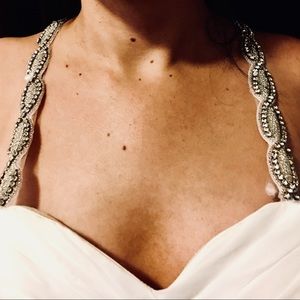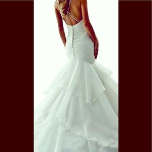 Beautiful size 9/10 wedding dress. Never worn, was bought for my daughters wedding originally, she ended up wearing a champagne colored dress instead. Off white with jewels, mermaid style.