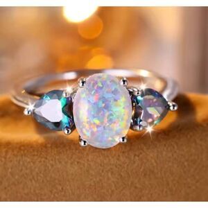 New without Tags Beautiful Simulated White Fire Opal Ring Size 7