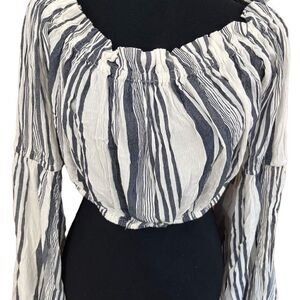 New with tags Live 4 Truth navy/cream off shoulder crop top with bell sleeve XL