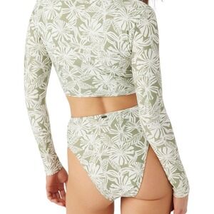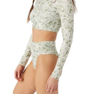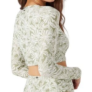 New woman's O'Neill Halfmoon Oxnard cropped swimming rash guard oil green crop top size large