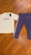 New women’s Adidas Sz M Cream Graphic Tee and Purple Leggings