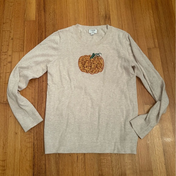New women's S J Crew Factory Halloween sequin pumpkin Teddie sweater (n3)