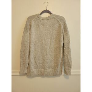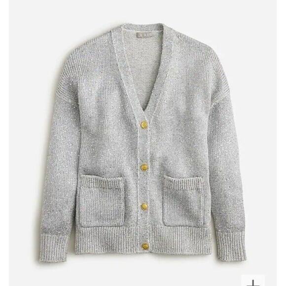New womens sz Medium J Crew silver sequin button down relaxed fit cardigan BS951