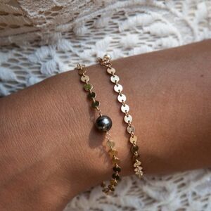 New 14k gold coin chain/ pearl & chain set