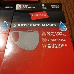New, Never Used, Still in the Package FIFTEEN Grey/Concrete Haines Kids Facemasks For Kids Youth Ages 5-12 Years Old.