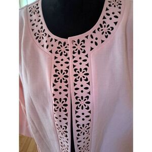 New With Tags Attached Women's Size 18 Alfred Dunner Blush Pink Open Front Floral Cut Out Design 3/4 Sleeve Blazer Jacket with Pockets