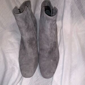 New suede boots, heel is 3 inches, and shaft of boot is 4.5 inches. Fits true to size