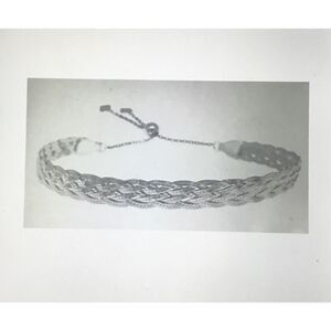 This bracelet is gorgeous! It’s sparkles and shimmers like crazy! Done in Italian .925 solid sterling silver and stamped for authenticity, the herringbone chains are done in a pretty braided design. The adjustable lariat style slider closure will fit up to a 9 inch wrist size. It’s retail value is $149.