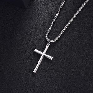 Unisex Simple 925 Sterling Silver Cross with a High Quality Durable Stainless Steel Box Chain.