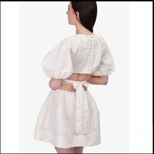 Aje White Silk Puff Sleeve Cut-Out Back Mini Dress.