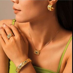 New ANTHRO 18k Gold Ss Evil Eye Malachite Talisman Ring