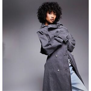 New!! With tags!! ASOS| Denim| Maxi| Trench Coat| Liquor N poker| Charcoal| 2 side Pockets| Tie waist| Notch Collar