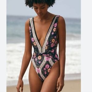 New!Agua Bendita Ellis Aguja Floral One Piece Cheeky Coverage Swimsuit