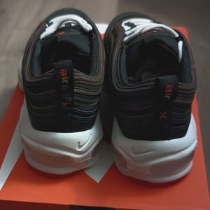 Upper crafted from black textile w/ reflective overlay outlined in a prismatic range of contrast colored stitching. (Check pics with flash for reflective look)