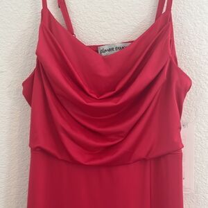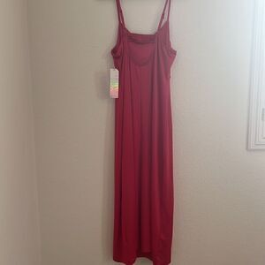 Brand new raspberry colored midi dress dress has pretty swoop top and a long slit at the bottom. Thin spaghetti straps that are adjustable, along with elastic band across the back dress. Also has a cute people in the back as well. Dress is stretchy and very comfortable. Made out of polyester and spandex. Dress this down or dress it up for date night, the choice is yours.