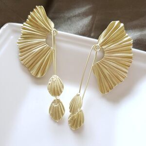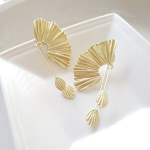 These Stunning Anthropologie Gold Fan Fair Post Back Earrings. A Must-Have Elegant & Beautiful Dangle Earrings. Features Gold Plated Lightwheght Day Or Evening Looks.
