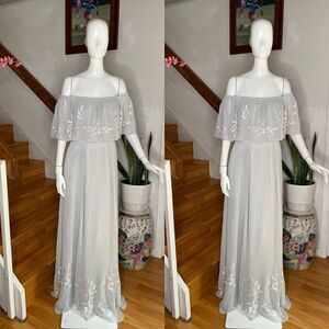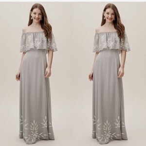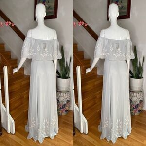 Floral embroidery and beading. Bridesmaid. Same look as the popular Blaize dress but with an off shoulder style. Comes with extra beading.