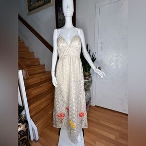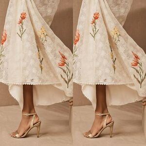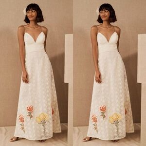 A splash of vibrant floral embroidery adds whimsy and dimension to this eyelet maxi dress.