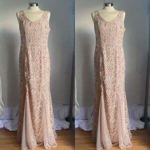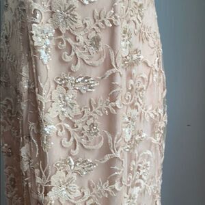 BHLDN Swathes of tulle peak through the flared hem of this v-neck lace dress, adding gorgeous texture and movement.