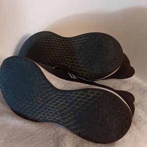 Sleek New Balance shoes in black with vibrant yellow and pink highlights. Ideal for running.
