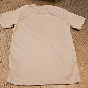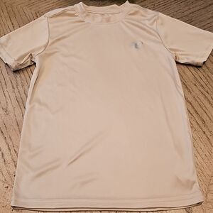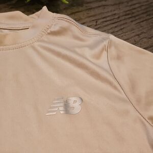 Light beige tee with short sleeves size 8 New Balance, soft fabric. Ideal for everyday wear.