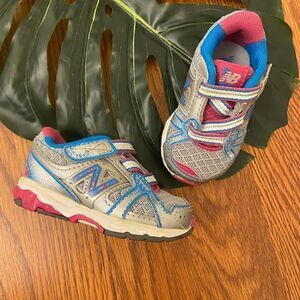 New Balance Silver, Blue & Pink Sneakers Size 3 Toddler