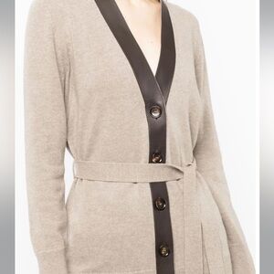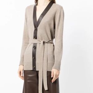New-Bally tie-waist wool cardigan with leather