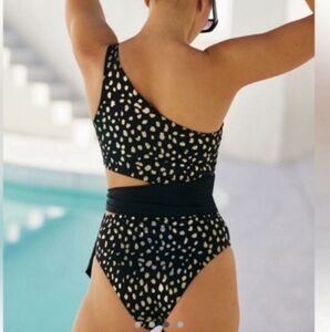 New!Beach Riot Carlie Tie Waist One Piece Swimsuit Black Gold