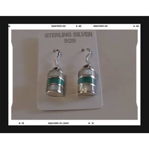 These gorgeous new dangle style earrings feature genuine inlaid turquoise and mother of pearl gemstones. They are 1.1" in length and 1/2" in width. They have French ear wire hook closures and have a 5.6 gram sterling silver weight.