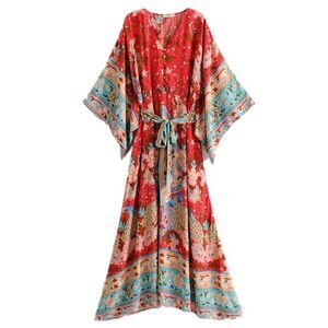 Gorgeous Bohemian style Dress with a matching tie belt. 100% cotton and perfect for summer. This can be a beach cover up or a dress for with a nice light material