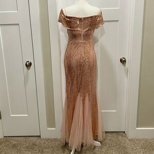Sparkle and shimmer for your special event with this gorgeous formal gown featuring elegant all-over sequins.