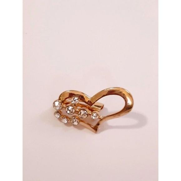 New Bijoux by Meera gold tone heart brooch rhinestones 1" bling Pretty little pin