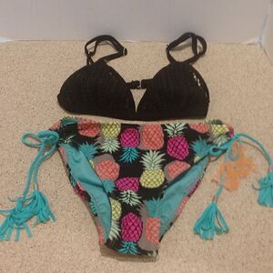 So pretty. XS Top with Small bottoms. Bottoms can be adjusted to fit with side string ties as seen in picture.
