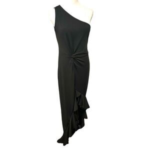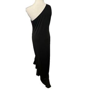 New black one shoulder dress with lots of stretch and no pockets. Brand new without tags. Waist 44”, bust 40”, length from waist-to-hem 21” and 42”.