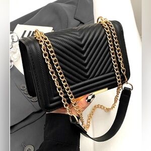 This stylish black quilted shoulder bag features a chic chain strap, perfect for any occasion. Its elegant design adds a touch of sophistication to your outfit.