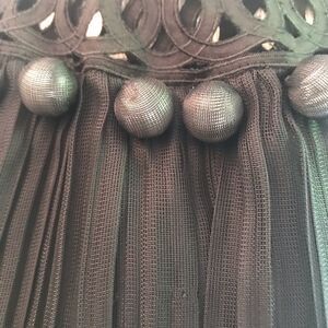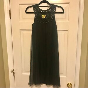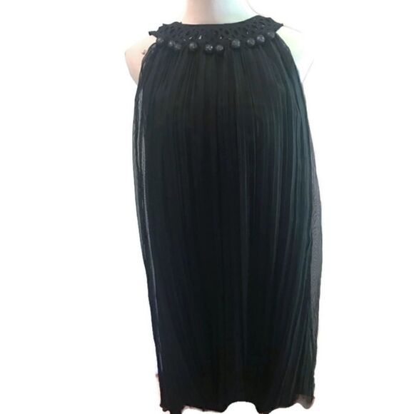 NWT Catherine Maladrino sleeveless pleated dress with ball embellishment along the neckline and some stretch. Bust 32” and length 38”. New with tags attached.